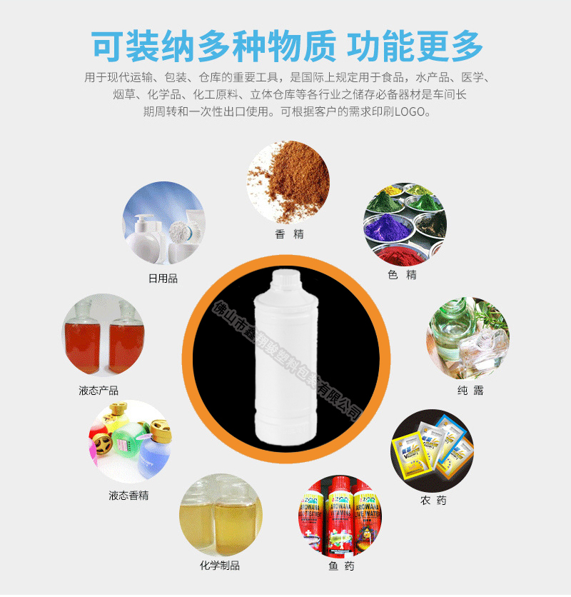 用 途:采用全新聚乙烯原料吹塑工藝制作而成,具有耐腐蝕,耐酸堿性,小口設(shè)計(jì)密封性能強(qiáng),廣泛應(yīng)用于化工清潔劑,表面處理劑、 輔料添加劑、飼料添加劑, 樹(shù)脂農(nóng)藥,日用化學(xué)品,聚氨酯、膠黏劑 消泡劑 電解液等各行業(yè)液體包裝。